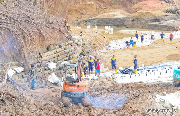 Following the briefing, he proceeded to the Elahara Ancient Anicut, which had sustained significant damage after being washed away due to the adverse weather. The Army machinery and personnel were actively engaged in restoration work at the site.