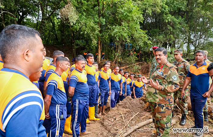 Continuing his assessment, he then visited to the Ududumbara region to inspect additional landslide-affected locations. He concluded his visit at the 5th Battalion of the Sri Lanka Light Infantry, where he interacted with personnel of the 1 Corps, commending their efforts during ongoing disaster-response operations.