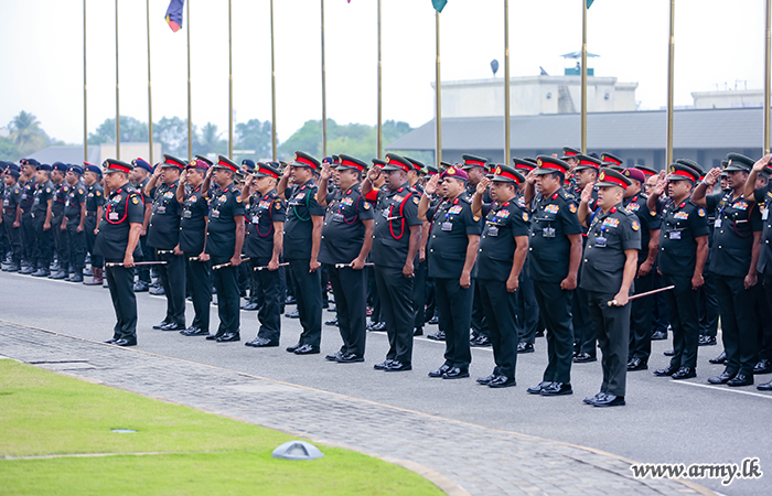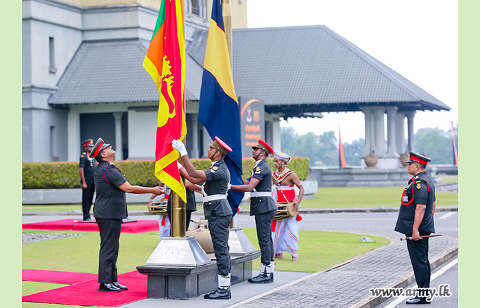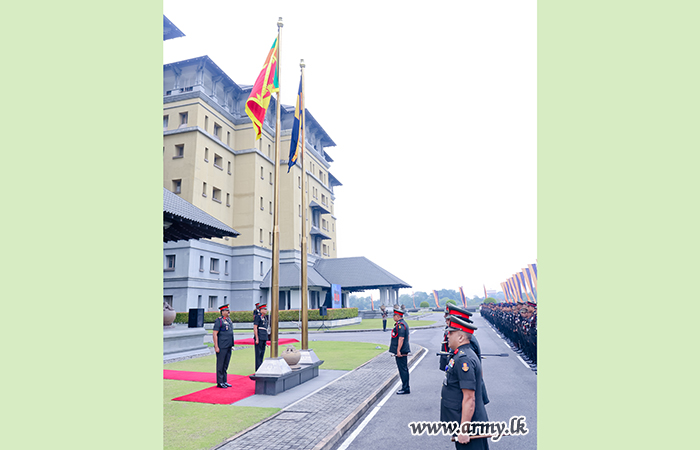 The event commenced with the arrival of Lieutenant General Lasantha Rodrigo RSP ctf-ndu psc IG, Commander of the Army, to the Headquarters premises as the Chief Guest. The Commander, along with Major General D.K.S.K. Dolage USP nps psc, Chief of Staff, hoisted the National Flag and the Army Flag.