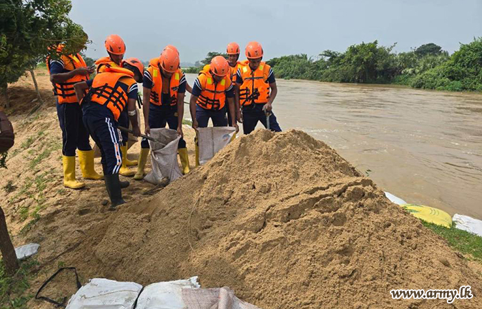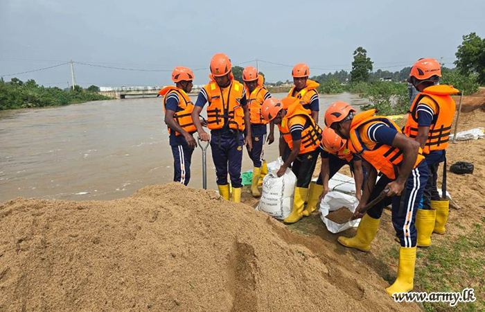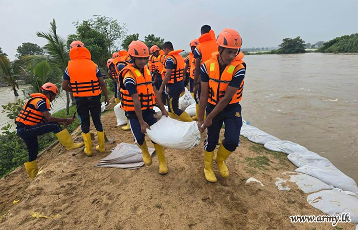 In response to adverse weather condition that affected the country, troops of the 14th Sri Lanka Sinha Regiment (14 SLSR), under the 242 Infantry Brigade, carried out the restoration of the side embankment of Duuwe Lake on 07 January 2026, following a formal request made by the Irrigation Department.