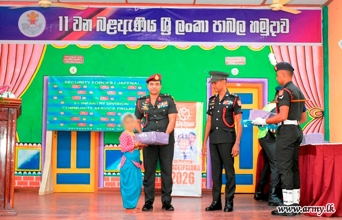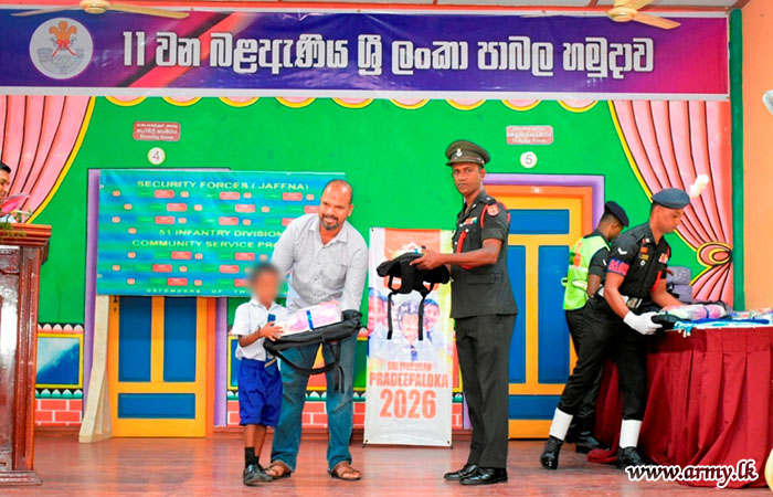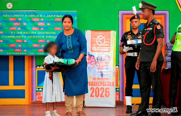 Army troops conducted a school stationery distribution programme for 120 students representing 11 schools in Karainagar area on 04 January 2026 at the Cultural Hall, Karainagar.