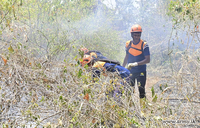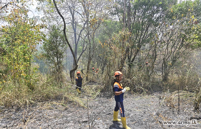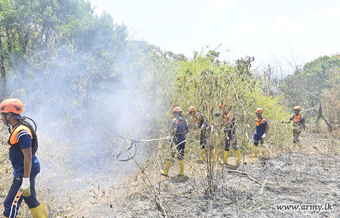 Troops of the 8th Battalion, Sri Lanka Sinha Regiment (8 SLSR), under instructions from the 572 Infantry Brigade, successfully contained a wildfire that broke out in Nilwakka, Puwakdeniya, Kegalle on 12 March 2026.