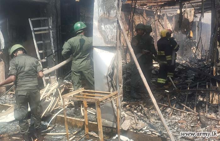 A sudden fire broke out at an electrical equipment shop located within a building owned by the Ambalangoda Pradeshiya Sabha was successfully brought under control on 09 November 2025 through the prompt response of 573 Infantry Brigade troops operating under the 61 Infantry Division and Security Forces (West).The fire, which started had spread to 12 nearby shops.