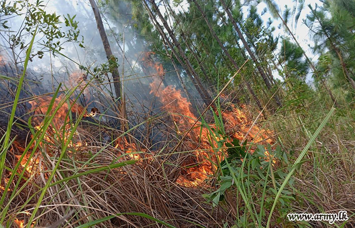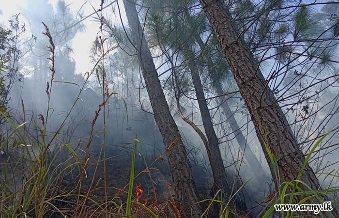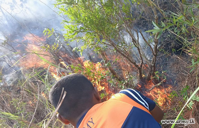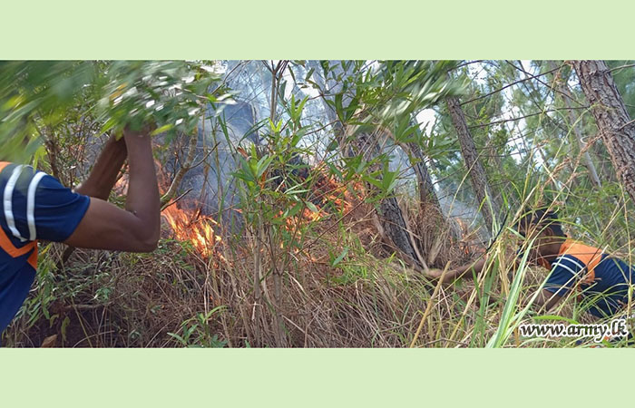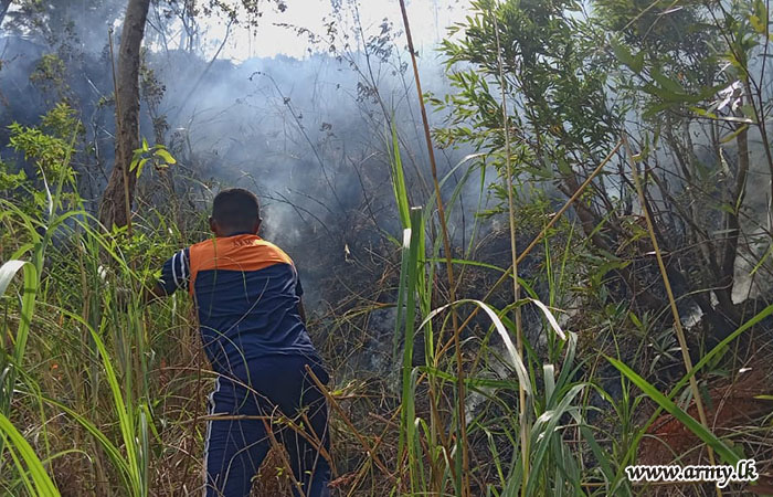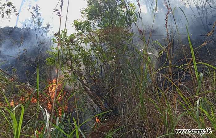 The troops of the 18th Battalion of the Sri Lanka National Guard, in collaboration with the Sri Lanka Air Force, swiftly responded to a bushfire that erupted in Halpe, Imbulpe, Balangoda area on 08 August 2025.