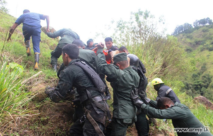 The 112 Infantry Brigade, under the command of Brigadier B.A.D.N.K. Bulathsinhala RWP RSP USP psc, led the search and rescue operations, with the participation of troops from the 23 Vijayabahu Infantry Regiment, 3 Commando Regiment, 1 Gemunu Watch, and 5 Gemunu Watch.