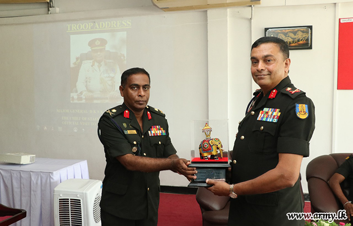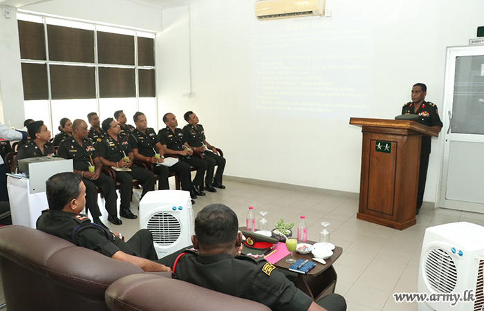 Upon arrival, he was warmly received by Major General T.T.P Siriwardene RSP ndc psc lsc, the Director General of Army Bands & Performing Arts. Afterwards, the Director presented a comprehensive briefing on the Directorate. Afterwards, he addressed the troops and posed for a group photograph.