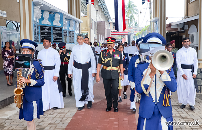 Upon arrival, the Commander of the Army was warmly welcomed by Rev. Fr. D.M.J Kennedy Perera, Principal of Loyola College, followed by a ceremonial salute from the school cadet team.