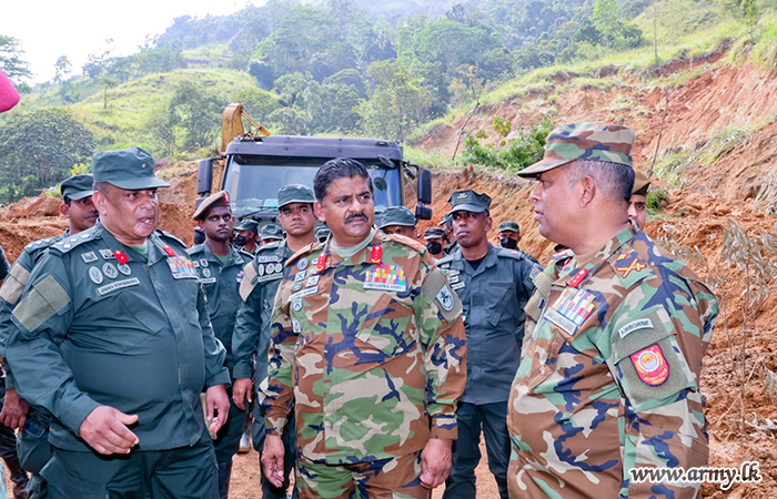Thereafter, he visited the worksite in the Gadolbokkuwa area along the Gampola-Nawalapitiya main road and subsequently inspected the Engineer site at Nawalapitiya, where troops are conducting disaster-response and reconstruction activities.He also visited the Safety Centre at Naranwita Temple.