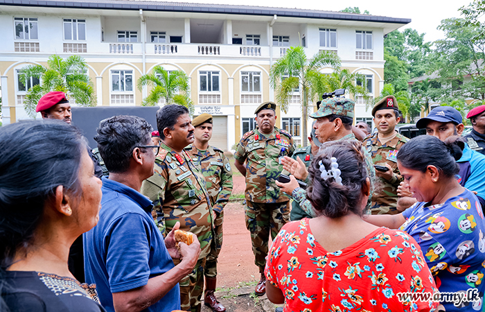 Lieutenant General Lasantha Rodrigo RSP ctf-ndu psc IG, Commander of the Army, paid a visit to the Emergency Safety Centre established at Rajasinghe College, Wellampitiya, on 29 November 2025 to assess the wellbeing of affected residents and review the ongoing disaster-relief operations in the area.