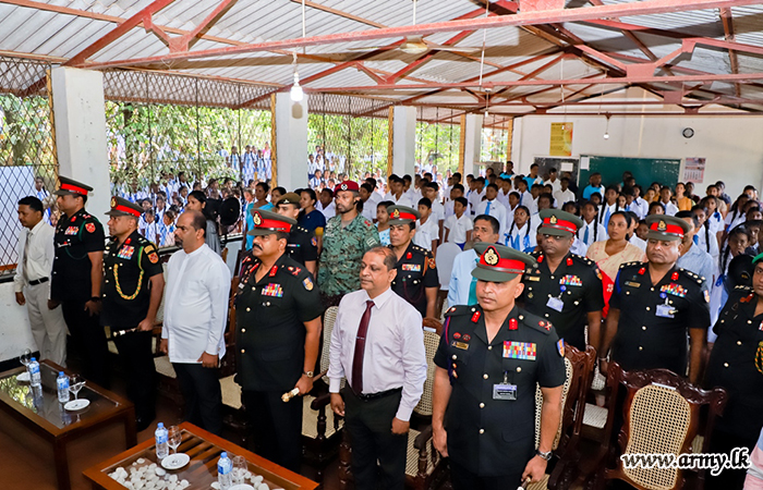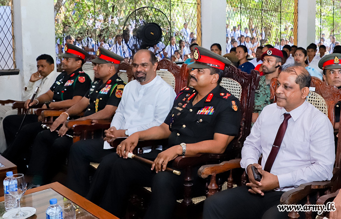 The event commenced with the rendition of the National Anthem and the school song, followed by the ceremonial lighting of the traditional oil lamp. The Principal, Mr. Wasantha Udayasiri, delivered the welcome address, emphasising the significance of the project. The Army Chief then laid the cornerstone, marking the official commencement of renovation work, which will be carried out by troops of the Engineer Services Regiment.