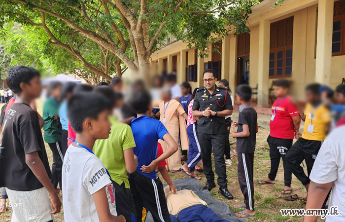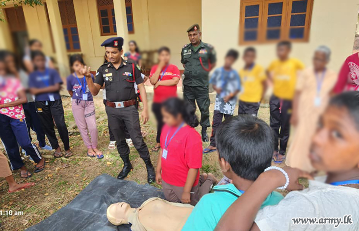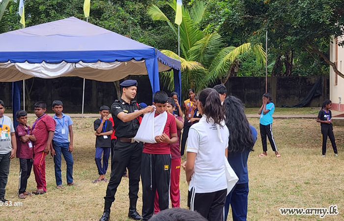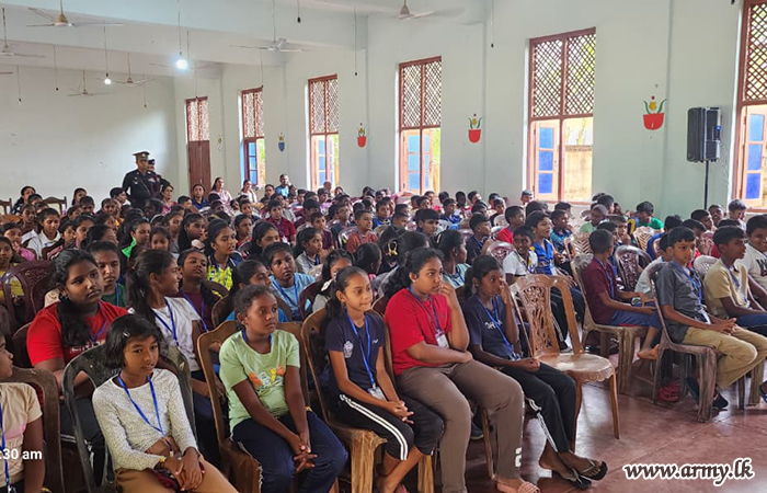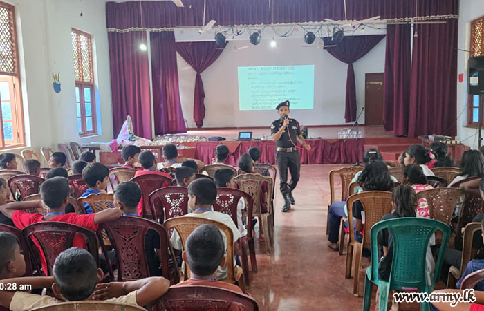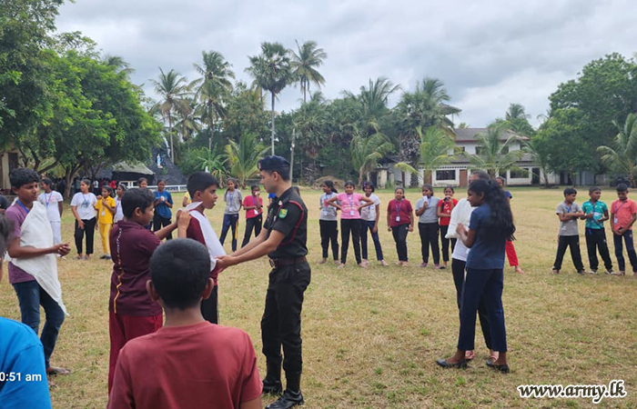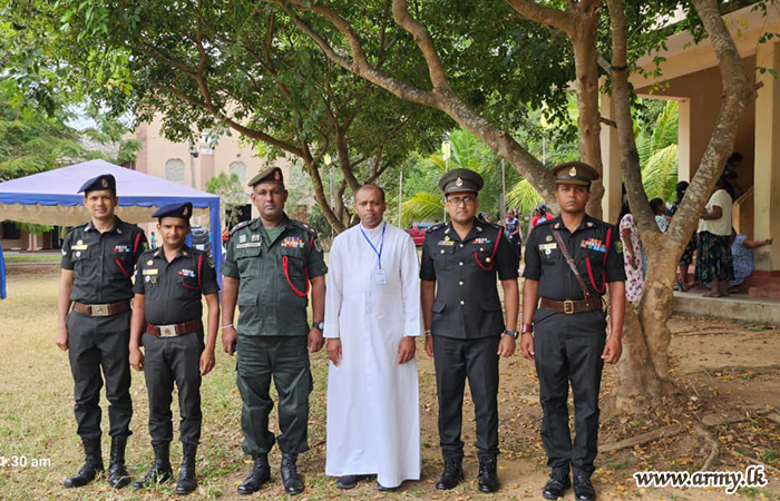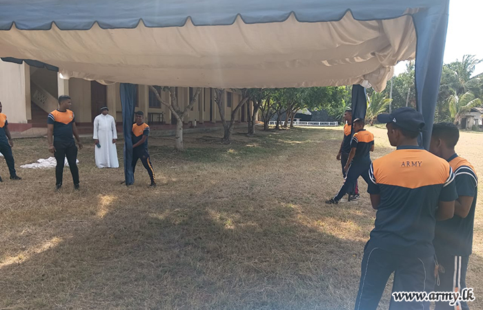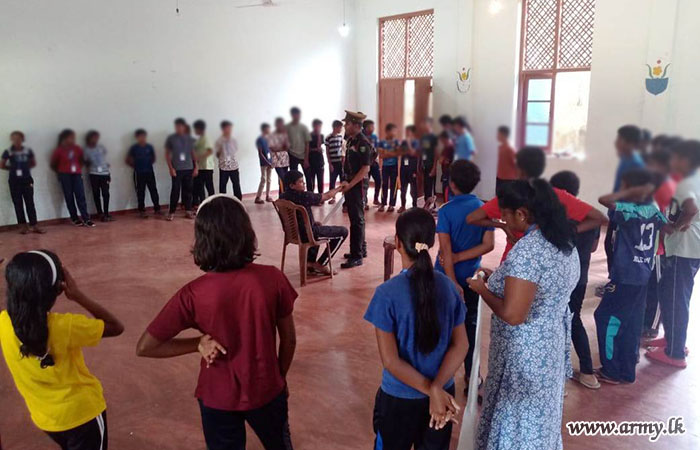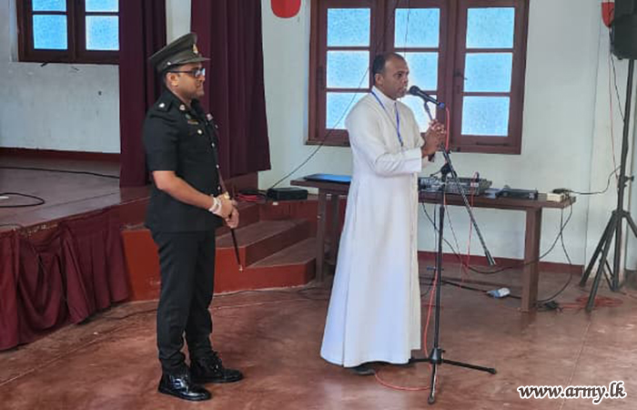 At the request of Father Nobert Andraradhi, Bishop of the North Central Province, logistical and material assistance were provided by the troops of 21 Infantry Division under the guidance of the Commander, Security Force - Wanni and the supervision of the General Officer Commanding of 21 Infantry Division. Support included manpower, essential items, equipment, a child protection lecture, and practical training sessions.
