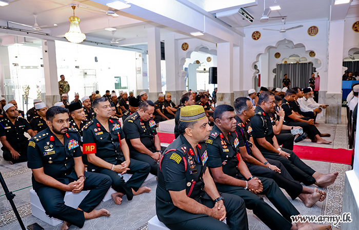 Lieutenant General Lasantha Rodrigo RSP ctf-ndu psc IG, Commander of the Army participated in the occasion and he was received upon arrival by Major General T.N. Majeed RSP USP ndc Isc, President of the Sri Lanka Army Muslim Association, along with the members of the Board of Trustees of Kollupitiya Jumma Mosque. The Chief Clergy, Rizwan (Moulavi) and Sheik Husrain Naufar (Moulavi) conducted the prayers.