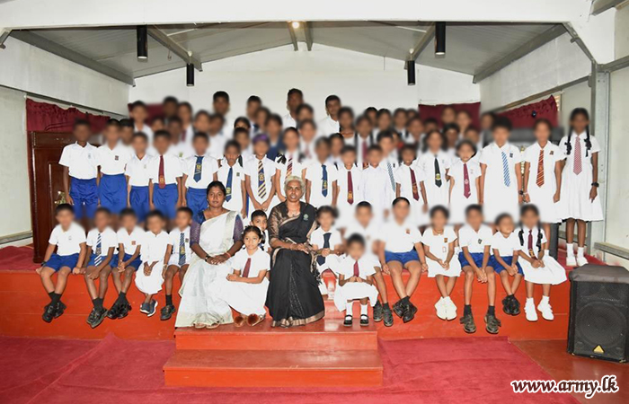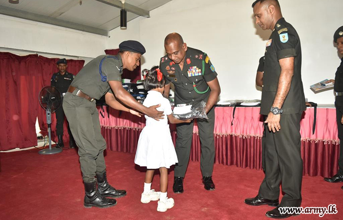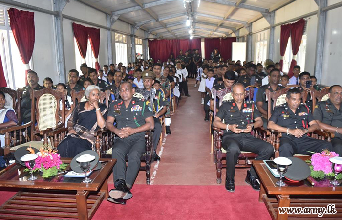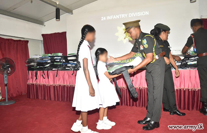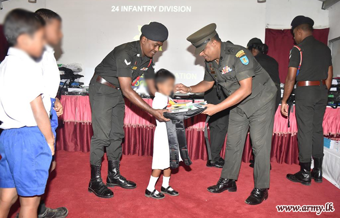 This programme was made possible through the generous financial contribution of Dr.Vijitha Nagendram, whose kind gesture enabled the distribution of essential school supplies to 103 children belonging to the soldiers and civil staff serving in the Headquarters of 24 Infantry Division. During the programme, students showcased their talents through captivating singing skills and oratory performances.