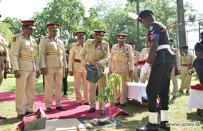 Afterwards, he planted a mango sapling, posed for a group photograph and subsequently addressed the troops.