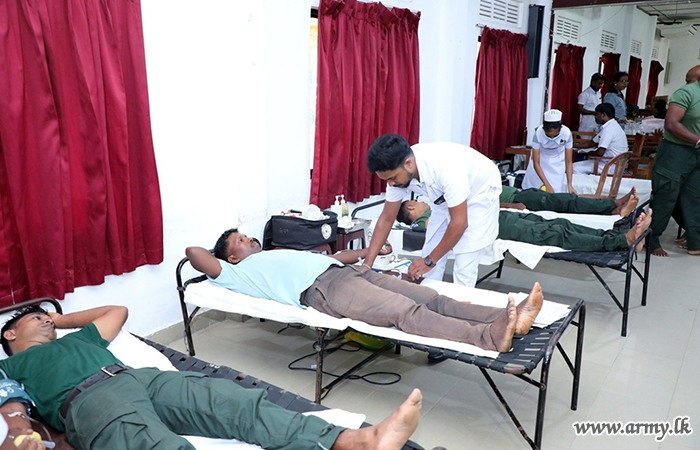 At the request of the Blood Bank of Jaffna Teaching Hospital, a blood donation programme was successfully conducted at the Nursing Training School, Jaffna, under the guidance of Major General K.T.P de Silva RSP ndu psc, the Commander, Security Force Headquarters (Jaffna).