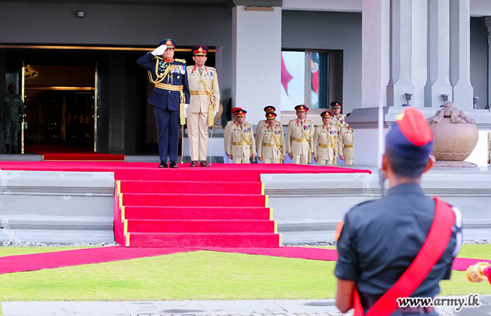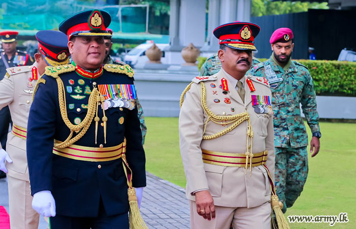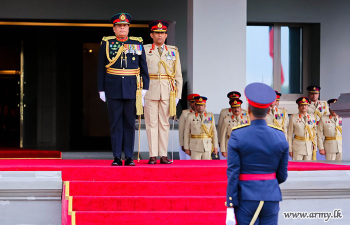 The departure of this distinguished Officer was marked by a ceremony befitting his towering stature. Upon his arrival, General Silva was accorded a resplendent welcome by Lieutenant General Lasantha Rodrigo RSP psc IG, the Commander of the Army. The proceedings commenced with the precision of military protocol as the Sri Lanka Artillery troops presented a ceremonial Guard of Honour.