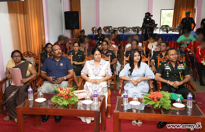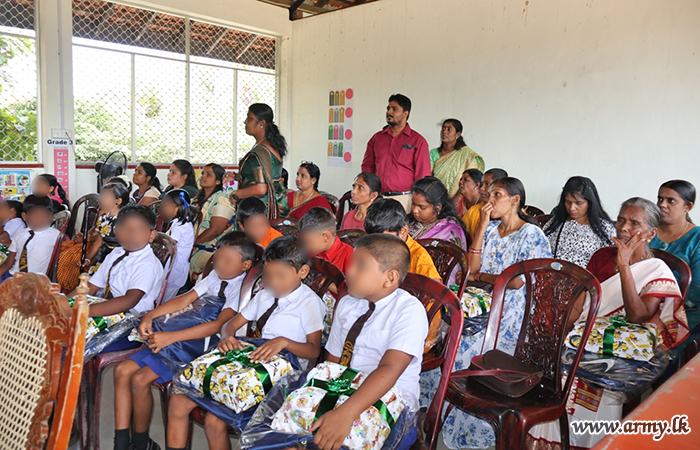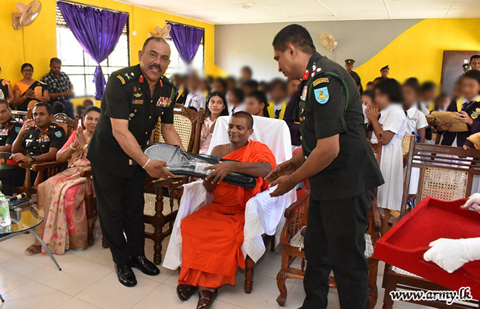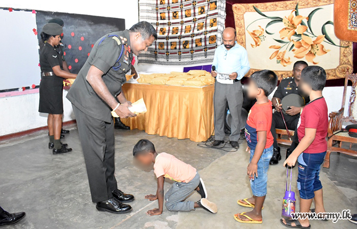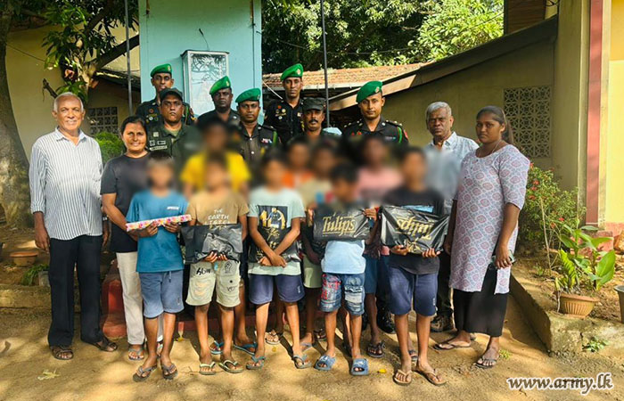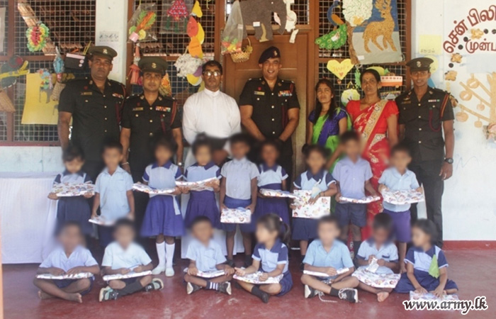 Simultaneously, 9th (V) Battalion the Sri Lanka Light Infantry donated 10 dry ration packs to underprivileged families in the area. The 17th Battalion the Gemunu Watch and 14th Battalion the Gajaba Regiment, under the 512 Infantry Brigade, served tea to pre-school children, while 11th Battalion the Sri Lanka Light Infantry provided lunch for 17 children at Waleisiyaari Pre-school.