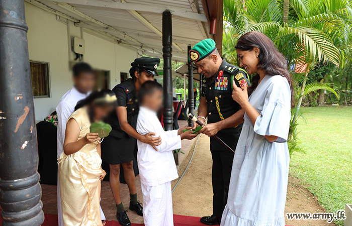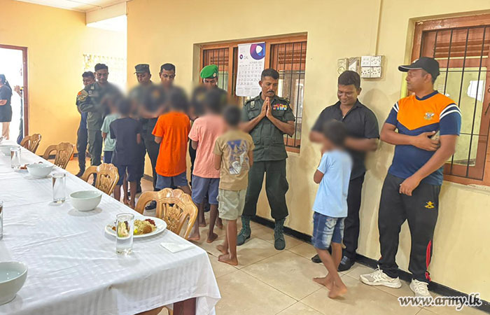 The 10 (V) Battalion the Vijayabahu Infantry Regiment, under the supervision of the 522 Infantry Brigade, carried out a book donation programme along with lunch treat for children at Champion Paththu Senth Pilps Meris Pre-school. The 11th Battalion the Gajaba Regiment further organized an almsgiving ceremony and distributed gift packages for children at the Aroban Children’s Home. Meanwhile 553 Infantry Brigade troops offered lunch for 17 children of Manthi Pre-school.