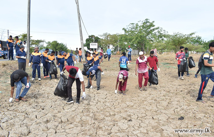 More than 250 Army personnel, 400 university students and volunteers contributed to a large-scale road cleaning campaign along both sides of the A-11 Main Road from Navallady to Punani, covering a 15 km stretch.