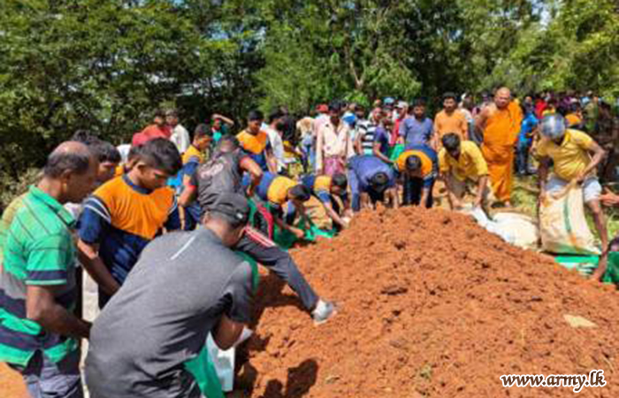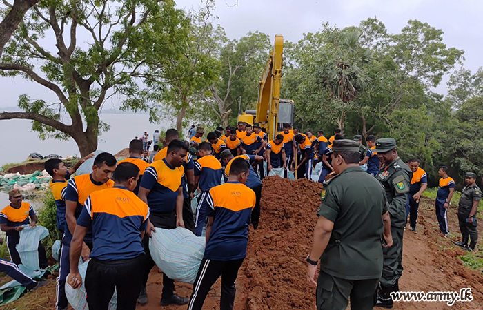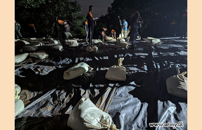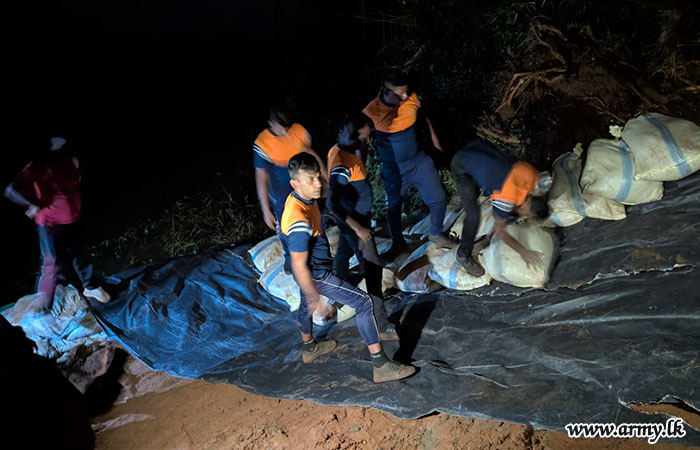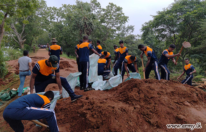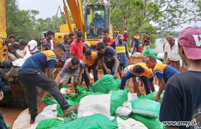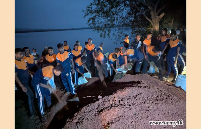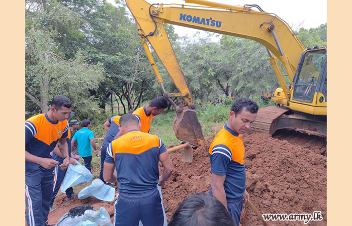With support from the local community, soldiers strengthened the bund using sandbags by preventing potential flooding. Their timely efforts ensured the safety and security in the area.