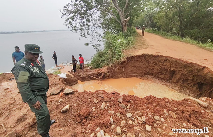 Troops of the 21 Infantry Division, 7 (V) Sri Lanka Armoured Corps, and 5 (V) Gajaba Regiment successfully repaired a partially damaged section of the Diwulwewa Tank bund on 10th January 2025. The damage posed a significant risk to the surrounding community.