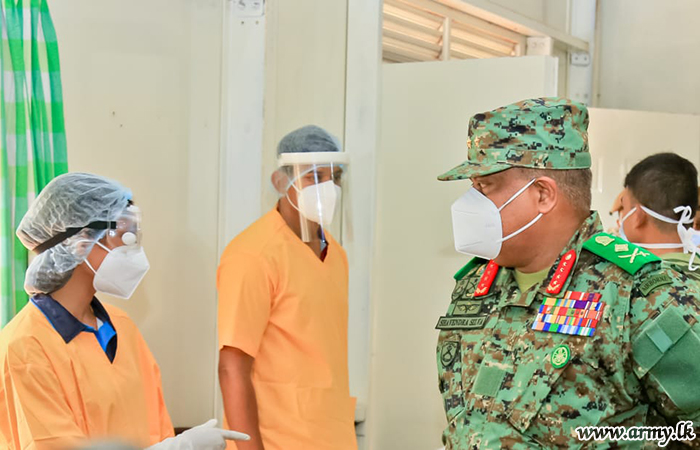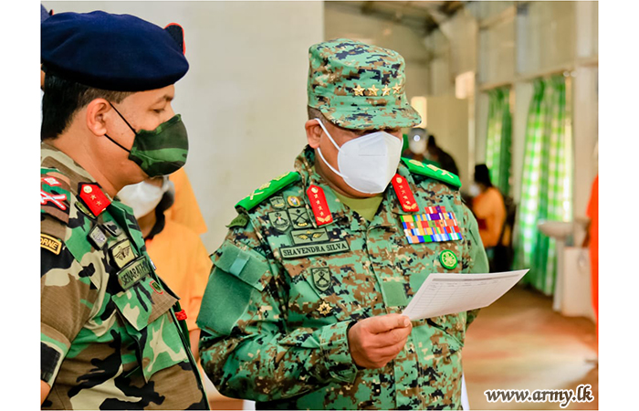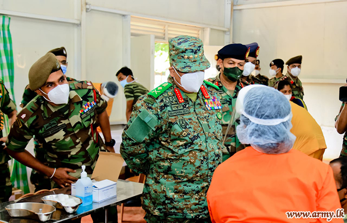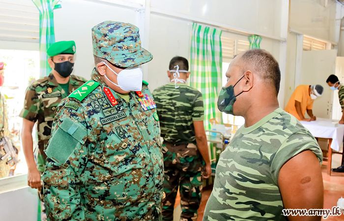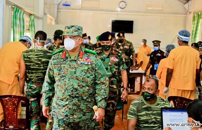 ආරක්ෂක මාණ්ඩලික ප්රධානී, යුද්ධ හමුදාධිපති සහ කොවිඩ් - 19 පැතිරිම වැළැක්වීමේ ජාතික ක්රියාන්විත මධ්යස්ථාන ප්රධානි ජෙනරල් ශවේන්ද්ර සිල්වා අද (30) දින පලාලි යුද්ධ හමුදා රෝහලේ එන්නත් කිරීම් කටයුතු සිදුකරන ආකාරය නිරීක්ෂණය කරනු ලැබීය. එහිදී යුද්ධ හමුදාධිපතිතුමන් එන්නත් ලබාගැනීමට සූදානම්ව සිටි වෛද්ය කාර්ය මණ්ඩලයේ සාමාජිකයින්, වැඩසටහනේ නිරත වූවන් සහ යුද්ධ හමුදා භටපිරිස් සමඟ ද අදහස් හුවමාරු කරගත්තේය.