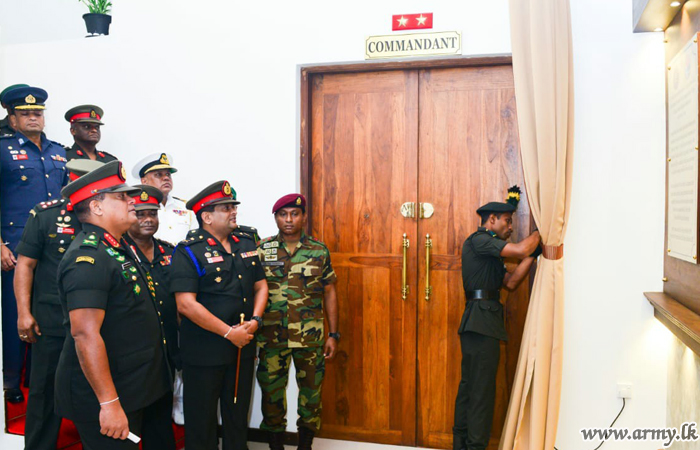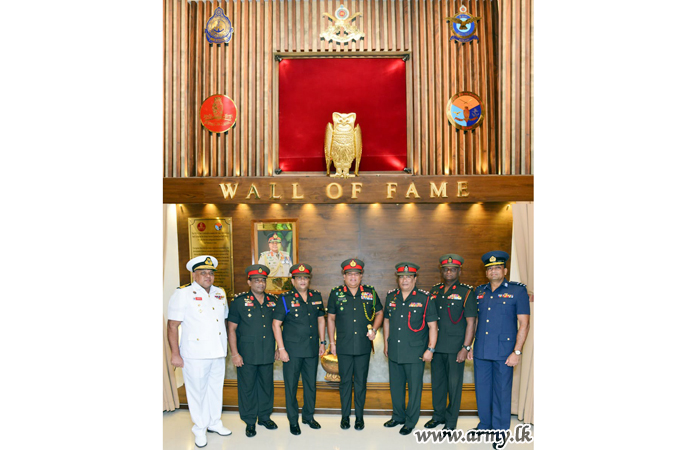 ආරක්ෂක සේවා අණ හා මාණ්ඩලික විද්යාල පරිශ්රයට සපැමිණි යුද්ධ හමුදාධිපතිතුමන් එම විද්යාලයේ සේනාවිධායක මේජර් ජෙනරාල් ඩි.ඒ.පී.එන්. දෙමටම්පිටිය විසින් උණුසුම් අයුරින් පිළිගනු ලැබීය. ඉන් අනතුරුව, එම විද්යාලයේ ‘පවුරේ කීර්තිය’ (Wall of Fame) නම් කීර්තිමත් පුද්ගලයින්ගේ ඡායාරූප එළිදැක්වීම අලංකාරවත් කරමින් එහි ස්ථාපිත කළ සිය ඡායාරූපය නිරාවරණය කිරීම සඳහා යුද්ධ හමුදාධිපතිතුමන් කැඳවාගෙන යනු ලැබීය.