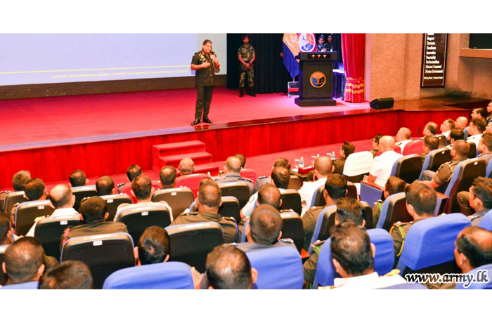 යුද්ධ හමුදාධිපතිතුමන් සිදුකළ සිය දේශනයේදී පැරණි ආරක්ෂක තර්ජන සහ සංසන්දනාත්මක විශ්ලේෂණයක් ඉදිරිපත් කළේය. ගෝලීය ආරක්ෂක තර්ජන සම්බන්ධයෙන් යුද්ධ හමුදාධිපතිතුමන් විසඳුම් ඉදිරිපත් කළ අතර ඒකාකෘති යෝජනා සඳහා යොමූවිමට ප්රථම මූලාරම්භයන් කෙරෙහි වැඩි අවධානයක් යොමු කරන ලෙස තරුණ නිලධාරීන්ගෙන් ඉල්ලා සිටියේය.