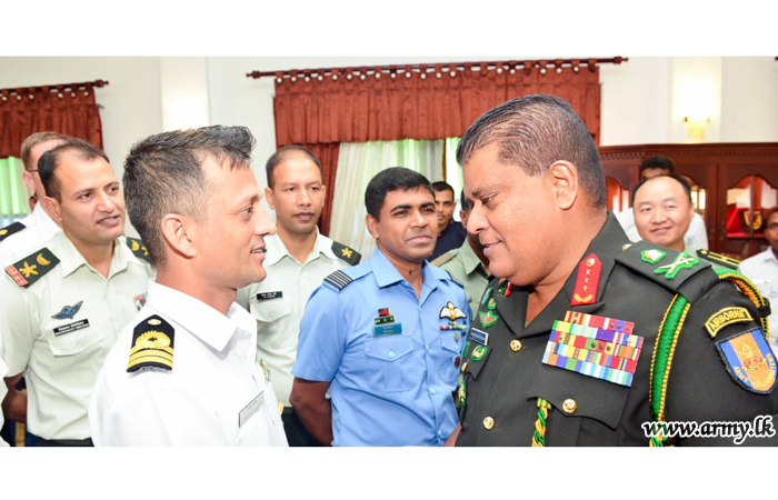 යුද්ධ හමුදාධිපතිතුමන් ආරක්ෂක සේවා අණ හා මාණ්ඩලික විද්යාල පරිශ්රයෙන් නික්මයාමට ප්රථම විදේශීය උපාධි අපේක්ෂකයින් සහ අනෙකුත් නිලධාරීන් සමඟ අදහස් හුවමාරු කරගත්හ.