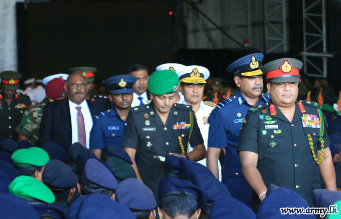 ආරක්ෂක සේනා මූලස්ථානයේ ප්රධාන දොරටුව අභියසදී ආරක්ෂක ලේකම්තුමන් වෙත 14 වන ගජබා රෙජිමේන්තුවේ භටපිරිස් විසින් හමුදා සම්ප්රදායානුකූල කඳවුරු සම්මාන මුරයක් පිරිනැමූ අතර අනතුරුව එදින ප්රධාන ආරාධිත අමුත්තා ලෙස සපැමිණි ආරක්ෂක ලේකම් තුමන් වෙත හමුදා සම්ප්රදායානූකූල වර්ණවත් සම්මාන ආචාර පෙළපාලියේ ගෞරවාචාරය පිරිනමනු ලැබීය. අනතුරුව, ආරක්ෂක ලේකම්තුමන් ත්රිවිධ හමුදාධිපතිවරුන් සමගින් යාපනය ආරක්ෂක සේනා මූලස්ථාන පරිශ්රයේ පිහිටි රණවිරු ස්මාරකය අභියස මල් කළඹක් තබා මාතෘභූමිය වෙනුවෙන් දිවිපිදු විරෝදාර රණවිරුවන්ගේ අමරණිය මතකයන් සිහිපත් කර ඔවුන්ට සිය ගෞරවාචාරය පුද කළේය.