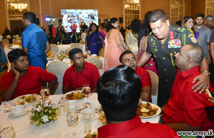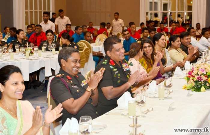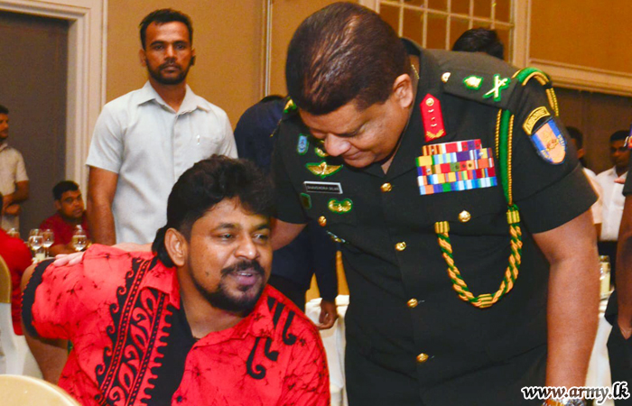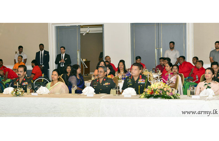ඉන් අනතුරුව, එම රණවිරුවන් ජීවිතයේ පළමු වතාවට හිල්ටන් හෝටලය වෙත රැගෙන යන ලද අතර එහිදි ඔවුන් සියල්ලන්ම එක්ව රසවත් දිවා භෝජන සංග්රහයකට සහභාගි වී ජනප්රිය ගායන ශිල්පීන් සමඟ විනෝදාස්වාදයට පත්විය. යුද්ධ හමුදාධිපති ලුතිනන් ජෙනරාල් ශවේන්ද්ර සිල්වා සහ යුද්ධ හමුදා සේවා වනිතා ඒකකයේ සභාපති සුජීවා නෙල්සන් මහත්මිය ගේ ආරාධනයෙන් මෙම අවස්ථාව වර්ණවත් කිරීම සඳහා රුකාන්ත ගුණතිලක, උරේෂා රවිහාරි, නලීන් පෙරේරා, රයිනි චාරුකා, සුනිල් පෙරේරා, ලහිරු පෙරේරා ඇතුළු ජනප්රිය ගායක ගායිකාවන් රැසක් සහභාගි වූහ. එම අවස්ථාවේදී සියලුදෙනා විනෝදාස්වාදයට පත් කරමින් මාතෘ භූමිය ආරක්ෂා කිරීම සහ අනාගත පරම්පරාවේ යහපත උදෙසා තම අත් පා අහිමිව ආබාධිත තත්ත්වයේ පසුවන රණවිරුවන්ගේ ජීවිත කාලයේ අමතක නොවන අවස්ථාවක් බවට එය පත් කලේය.