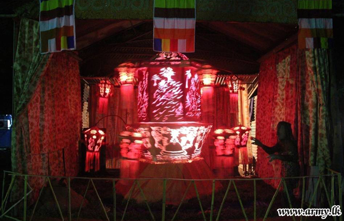 දිවයින පුරා ස්ථාපිත සියලුම ආරක්ෂක සේනා මූලස්ථාන වාර්ෂිකව පවත්වන වෙසක් තෙමඟුල් උත්සවය නිමිත්තෙන් මැයි මස 21 සහ 22 යන දිනයන්හි දි ආමිස හා ප්රතිපත්ති පූජා වැඩසටහන් සංවිධානය කළ අතර, විශේෂ වෙසක් සැරසිලි සහ විවිධ බෞද්ධාගමික වැඩසටහන් ද පැවැත්විය. යුද හමුදා භට පිරිස් කිලිනොච්චි ආරක්ෂක සේනා මුලස්ථානයේ සේවයේ නියුතු ගුවන් හමුදා භට පිරිස්, පොලිස් නිලධාරීන් සහ සිවිල් ආරක්ෂක දෙපාර්තමේන්තුවේ සාමාජිකයින් සමඟ එක්ව කිලිනොච්චි මධ්ය මහා විද්යාල ක්රීඩාංගනයේ දී දන්සැල්, වෙසක් කූඩු ප්රදර්ශනයක් සහ වෙනත් වර්ණවත් සැරසිලිවලින් සමන්විත වෙසක් කලාපයක් සංවිධානය කරන ලදි. කිලිනොච්චි ආරක්ෂක සේනා ආඥාපති ඇතුළු අනෙකුත් සම්භාවනීය අමුත්තන් සමඟින් මෙහි ප්රධාන ආරාධිත අමුත්තා ලෙස පැමිණි උතුරු පළාත් ආණ්ඩුකාර ගරු රෙජිනෝල්ඩ් කුරේ මහතා විසින් කිලිනොච්චි ආරක්ෂක සේනා මුලස්ථානයේ සෙබලුන් විසින් නිර්මාණය කරන ලද වෙසක් කලාපය විවෘත කරන ලදි. කිලිනොච්චි ආරක්ෂක සේනා ආඥාපති මේජර් ජෙනරාල් අමල් කරුණාසේකරගේ අධීක්ෂණය මත සංවිධානය කළ මෙම වෙසක් කලාපය නැරඹිම සඳහා පළමු දිනයේදීම කිලිනොච්චි ප්රදේශයේ වැසියන් 10,000 කට අධික පිරිසක් සහභාගි වූහ. සේනාංකාධිපතිවරුන්, ඉදිරි නඩත්තු පෙදෙසෙ ආඥාපති, බලසේනාධිපතිවරුන්, ත්රිවිධ හමුදා ජ්යෙෂ්ඨ නිලධාරීන්, පොලිස් හා සිවිල් ආරක්ෂක දෙපාර්තමේන්තු සාමාජිකයින්, සෙසු නිලයින් මෙන්ම සිවිල් වැසියන් බොහෝ පිරිසක් ද මෙම අවස්ථාව සඳහා එක්ව සිටියහ. එමෙන්ම කිලිනොච්චි ආරක්ෂක සේනා භට පිරිස් වෙසක් දිනයේ (21) දී එම ආරක්ෂක සේනා ආඥාපතිගේ උපදෙස් මත ප්රදේශයේ සිවිල් වැසියන් වෙත කිරි ගවයින් 29 ක් බෙදාදීම සිදු කරන ලදි. මේ සඳහා උතුරු පළාත් ආණ්ඩුකාරවරයා, කිලිනොච්චි ප්රාදේශිය ලේකම්, කිලිනොච්චි ආරකෂක සේනා ආඥාපති, ජ්යෙෂ්ඨ නිලධාරීන්, සෙසු නිලයන් මෙන්ම සිවිල් වැසියන් ද සහභාගි වූහ. තවද, මධ්යම ආරක්ෂක සේනා මුලස්ථානය එම ආරක්ෂක සේනා ආඥාපති මේජර් ජෙනරාල් ඒ.පී. ද ඉසෙඩ් වික්රමරත්නගේ අධික්ෂණය මත දියතලාව මුතුකුමරු ක්රීඩාංගනයේ දී වෙසක් කලාපයක් සංවිධානය කරන ලදි. බැති ගී ප්රසංගයක්, වෙසක් පහන් කූඩු හා අලංකාර සැරසිලි ආදි දෑ මෙම වෙසක් කලාපය තුල ප්රදර්ශනය කෙරිනි. ශ්රී ලංකා ගුවන් හමුදාව සහ යුද හමුදා පුහුණු පාසල් මෙම වෙසක් කලාපය සැකසීමට යුද හමුදා සාමාජිකයින්ට සහයෝගය ලබා දුන්හ. මධ්යම ආරක්ෂක සේනා මූලස්ථානයේත්, එම ප්රදේශයේ යුද හමුදා පුහුණු පාසල්වල සහ ඒකකවල භට පිරිස් එක්ව ඉදිරිපත් කළ භක්ති ගීත සංදර්ශනය මෙහි දී කැපී පෙනිනි. වෙසක් පහන් කූඩු තරඟයේ ප්රථම, දෙවන සහ තෙවන ස්ථාන පිළිවෙලින් 17 වන ඉංජිනේරු සේවා බලකාය, ස්වෙච්ඡා පුහුණු පාසල සහ ශ්රී ලංකා යුද හමුදා විද්යා පීඨය විසින් දිනා ගනු ලැබීය. පාසල් සිසුන්ට මෙන්ම වෙසක් පහන්