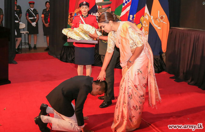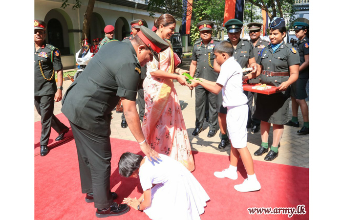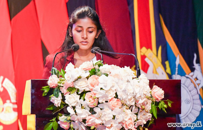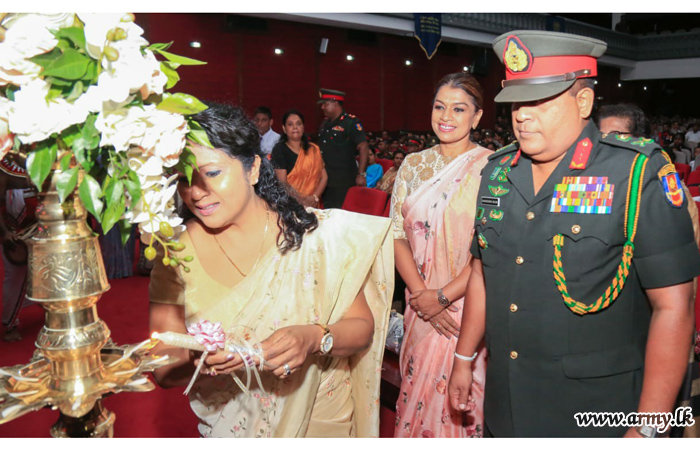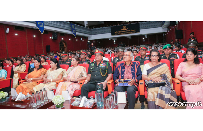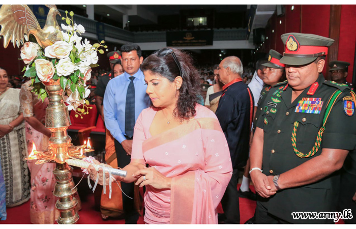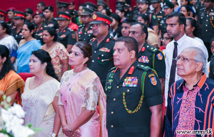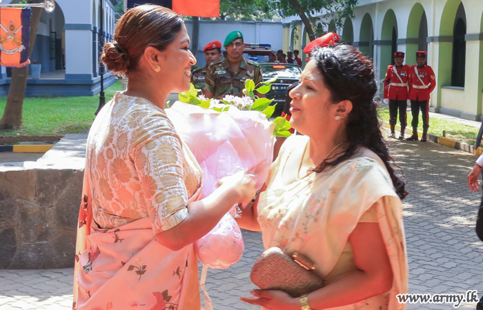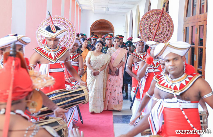 මෙම අවස්ථාවට සපැමිණි ආරක්ෂක අමාත්යාංශයේ සේවා වනිතා ඒකකයේ සභාපතිනි චිත්රානි ගුණරත්න මැතිණිය සහ වැඩබලන ආරක්ෂක මාණ්ඩලික ප්රධානී මෙන්ම යුද්ධ හමුදාධිපති ලුතිනන් ජෙනරාල් ශවේන්ද්ර සිල්වා, යුද්ධ හමුදා සේවා වනිතා ඒකකයේ සභාපතිනි සුජිවා නෙල්සන් මැතිණිය සමගින් ආරක්ෂක සේවා විද්යාලයේ දියණියක් සහ පුතෙකු විසින් බුලත් හුරුල්ලක් දී උණුසුම් අයුරින් පිළිගැනීමෙන් අනතුරුව යුද්ධ හමුදා සංස්කෘතික කණ්ඩායම පෙරටුකරගත් වර්ණවත් පෙරහැරකින් ශ්රවණාගාරය වෙත කැටුව යන ලදී.