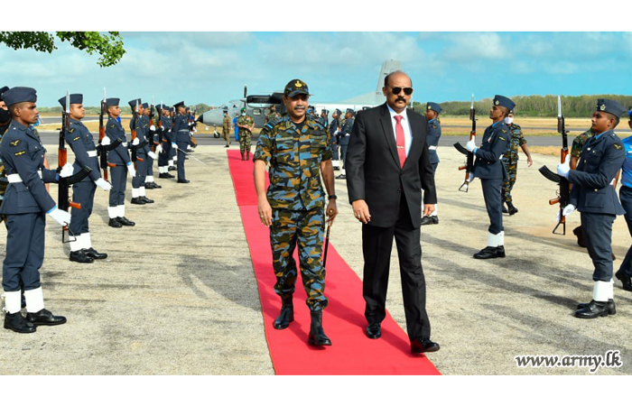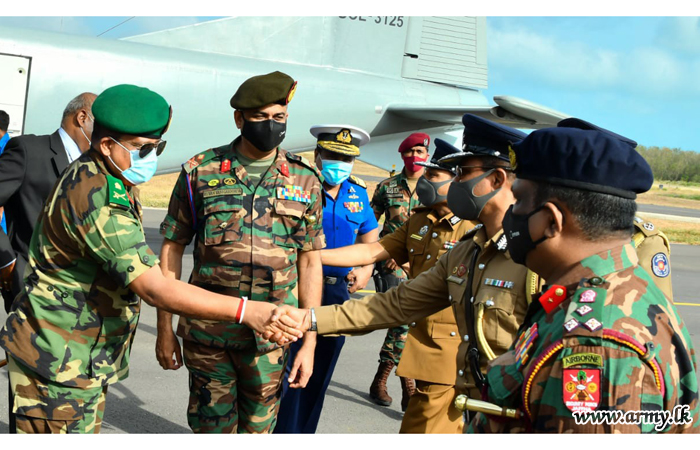 මෙම ආරක්ෂක නියෝජිත පිරිස යාපනය ආරක්ෂක සේනා මූලස්ථානයට සපැමිණිමට පෙර පාලාලි ගුවන් තොටුපල පරිශ්රයේදී යාපනය ආරක්ෂක සේනා ආඥාපතිතුමන් විසින් ඉතා උණුසුම් අයුරින් පිළිගනු ලැබීය. අනතුරුව යාපනය ආරක්ෂක සේනා මූලස්ථානයේ සංචාරය කළ ආරක්ෂක ලේකම් තුමන් වෙත 3 වන ශ්රි ලංකා සංඥා බලකායේ භටපිරිස් විසින් කඳවුරු සම්මාන ආචාර මුරයක් පිළිගන්වනු ලැබීය. අනතුරුව යාපනය ආරක්ෂක සේනා ආඥාපති මේජර් ජෙනරාල් රුවන් වනිගසූරිය විසින් පැමිණි ආරක්ෂක නියෝජිතයින් පිරිස පිළිගැනීමෙන් අනතුරුව දවසේ ඉදිරි වැඩ කටයුතු ආරම්භ විය.