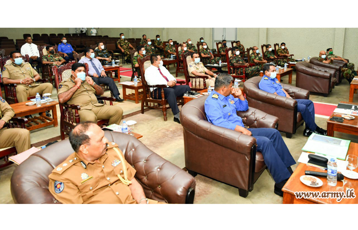 ආරක්ෂක ලේකම් තුමන්ගේ ප්රධානත්වයෙන් පැවති සාකච්ඡාවට යුද්ධ හමුදාව, නාවික හමුදාව, ගුවන් හමුදාව සහ පොලීසිය ද ඇතුළුව උතුරේ ආරක්ෂාව පිළිබඳ වගකිවයුතු නිලධාරීන් අනුපිළිවෙලින් වර්තමාන ආරක්ෂක තත්ත්වය, කොවිඩ් 19 වෛරසයේ බලපෑම්, නීතිය හා සාමය පවත්වා ගැනීම, සමගිය හා සාමය, ජාවාරම් සහ විකිණීම පිළිබඳ සවිස්තර තොරතුරු ඉදිරිපත් කළහ. තවද, මත්ද්රව්ය සහ මංකොල්ලකෑම්, අපරාධ, ප්රතිසන්ධාන ක්රියාමාර්ගවලට ඇති බාධා, ප්රජා පොලිස් ඒකකවල කාර්යභාරය යනාදිය පිළිබදව ද කරුණු සාකච්ඡා කරන ලදී.