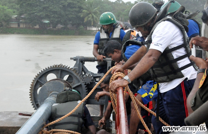 පසුගිය දිනවල ඇති වූ අධික වර්ෂාව හේතුවෙන් ඉරණමඩු වැවෙහි වාන් දොරටු විවෘත කිරීමේ දී එක් වාන් දොරටුවක් විවෘත කිරීමට යාමේ දී ඇති වූ ගැටලු සහගත අවස්ථාවේ කිළිනොච්චි වාරිමාර්ග දෙපාර්තමේන්තුවේ ඉංජිනේරුවන් සමඟ කිළිනොච්චි ආරක්ෂක සේනා මූලස්ථානය යටතේ සිටින 9 වන ඉංජිනේරු සෙබලුන් එක්ව වාන් දොරටුව යථා තත්වයට පත් කරනු ලැබීය. අධික වර්ෂාව හේතුවෙන් වැවෙහි ජල මට්ටම සීඝ්රයෙන් ඉහල ගොස් තිබිය දී වැව් බැම්මට සිදු වන හානිය වළක්වා ගැනීමේ අරමුණින් අතිරික්ත ජලය මුදා හැරීමට වාන් දොරටු විවෘත කිරීමේ දී එය අනපේක්ෂිතව අවහිරවීම නිසා දැඩි අවදානම් තත්වයක් ඇති වී තිබේ. මෙම ජලාශයේ වාන් දොරටු විවෘත කිරීමට නොහැකිවීමෙන් ඇති වෙන්නට ගිය විනාශකාරී තත්වය වළක්වා ගැනීම සඳහා ප්රදේශයේ වාරිමාර්ග ඉංජිනේරුවරුන් කිළිනොච්චි ආරක්ෂක සේනා මූලස්ථාන ආඥාපති මේජර් ජෙනරාල් අමල් කරුණාසේකරගෙන් කළ ඉල්ලීමකට අනුව ඔහුගේ උපදෙස් අනූව කඩිනමින් එම ස්ථානයට 9 වන ඉංජිනේරු සෙබලුන් යවා එම ක්රියාව ඉතා යුහුසුළුව ඉටු කරනු ලැබීය. අවසානයේ මෙම උත්සායහ සාර්ථක වී අවහිර වී තිබු වාන් දොරටු විවෘත කොට අතිරික්ත ජලය මුදා හැරීමට මෙම පිරිසට හැකිවිය.