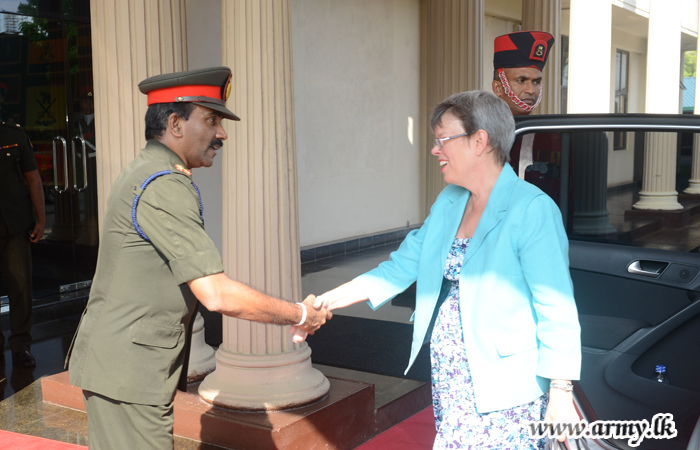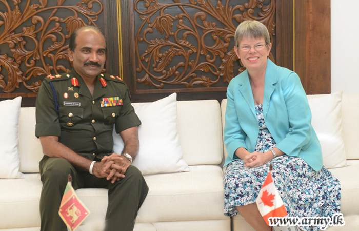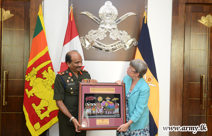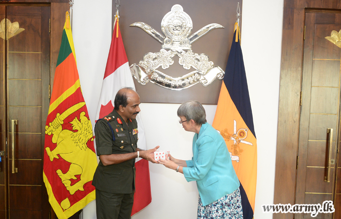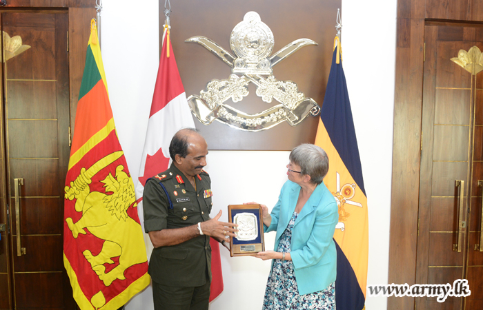 ශ්රී ලංකාවේ කැනඩා මහකොමසාරිස් ෂැලී වයිටින් මහත්මිය සහ යුද හමුදාපති ලුතිතන් ජෙනරාල් ක්රිෂාන්ත ද සිල්වා අතර හමුවක් බ්රහස්පතින්දා (19) දින පස්වරුවේ යුද හමුදා මූලස්ථානයේ දී සිදු කෙරිනි. මෙහි දී ෂැලී වයිටින් මහත්මිය සමඟ මෙහි පැමිණි මහකොමසාරිස් කාර්යාලයේ ආරක්ෂක උපදේශක කර්නල් මාර්ක් ඩසල්ට් හමුදාපති ලේකම් කාර්යාලයේ පිවිසුම් දොරටුව අභියස දී පිළිගැනීමෙන් අනතුරුව යුද හමුදාපති ලුතිතන් ජෙනරාල් ක්රිෂාන්ත ද සිල්වා විසින් හමුදාපති කාර්යාලය වෙත කැදවාගෙන යනු ලැබීය. එහි දී සිදු කෙරුනු ද්විපාර්ශවීය සාකච්ඡාවේ දී උතුරු සහ නැගෙනහිර ආරක්ෂක තත්වය ඇතුළු කරුණුකාරණ රැසක් පිළිබඳ සාකච්ඡා කෙරිනි. රටේ පවතින ආරක්ෂාව පිළිබඳව සහ යුද හමුදාවේ වත්මන් කාර්යභාරය පිළිබඳව විස්තරයක් ද කරනු ලැබීය. මෙම අවස්ථාව සිහිගන්වමින් සුහදත්වය සිහිගැන්වීමේ අරමුණින් දෙපිරිස අතර සමරු තිළිණ හුවමාරුවක් ද සිදු කෙරිනි.