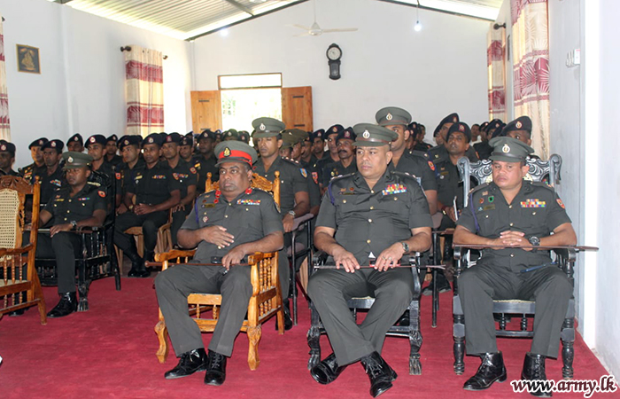 ඒකක අණදෙන නිලධාරී විසින් මේජර් ජෙනරල් ලංකා අමරපාල වෙත ඒකකය වෙතින් ක්රියාත්මක කරනු ලබන ජාතිය ගොඩනැගීමේ ව්යාපෘතිවල ප්රගතිය, ඒකකයේ යටිතල පහසුකම් සංවර්ධනය, කඳවුරු ආරක්ෂාව, පුහුණු වැඩසටහන්, සෙබළුන්ගේ සුභසාධනය කටයුතු සහ අභියෝගාත්මක අවස්ථාවන්ට මුහුණ දීම යන ආදී කරුණු පිළිබඳව පැහැදිලි කළේය. අනතුරුව එතුමන් සියලුම නිලයින් අමතමින් ඒකකයේ අතීත මතකයන් ආවර්ජනය කල අතර, කැපවීමෙන් යුතුව තම රාජකාරිය මනා ලෙස ඉටුකරන ලෙස ඔවුන්ගෙන් ඉල්ලා සිටියේය.