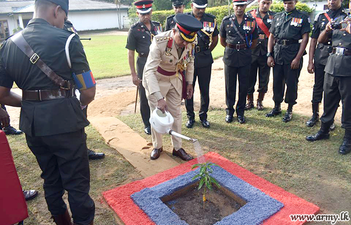 සංවත්සර දින සැමරුමේ ආරම්භය සනිටුහන් කරමින් (පෙබරවාරි 28) එම මූලස්ථානය වෙත සපැමිණි 572 වන පාබල බලසේනාවේ බලසේනාධිපතිතුමන් වෙත හමුදා සම්ප්රදායානුකූල කඳවුරු මුරයේ ගෞරවාචාරය පුදකිරීමෙන් අනතුරුව ඉතා උණුසුම් අයුරින් පිළිගනු ලැබූ අතර, එදින එතුමන් විසින් මෙම අවස්ථාව සනිටුහන් කරමින් කඳවුරු පරිශ්රයේ අඹ පැළයක් ද රෝපණය කරන ලදී. අනතුරුව එම බලසේනාවේ මාණ්ඩලික නිලධාරීන් සහ සෙසු නිලයින් සමඟ සමූහ ඡායාරූපයකට ද පෙනී සිටියේය.