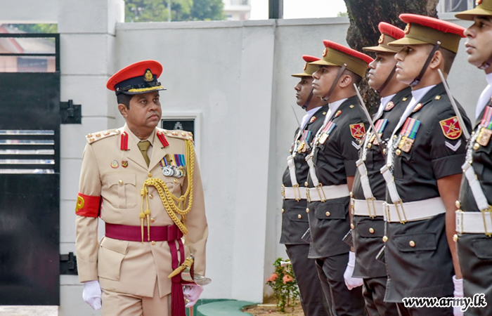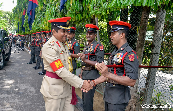 කඳවුරු පරිශ්රය වෙත සපැමිණි බ්රිගේඩියර් ඩී.එම්.ඒ බණ්ඩාර වෙත වෙත ශ්රී ලංකා යුද්ධ හමුදා පොලිස් හේවා බලකා රෙජිමේන්තු මධ්යස්ථානයේ භටපිරිස් විසින් හමුදා සම්ප්රදායානුකූල කඳවුරු මුරයේ සහ සම්මාන පෙළපාලියේ ගෞරවාචාරය පුදකරනු ලැබූහ.