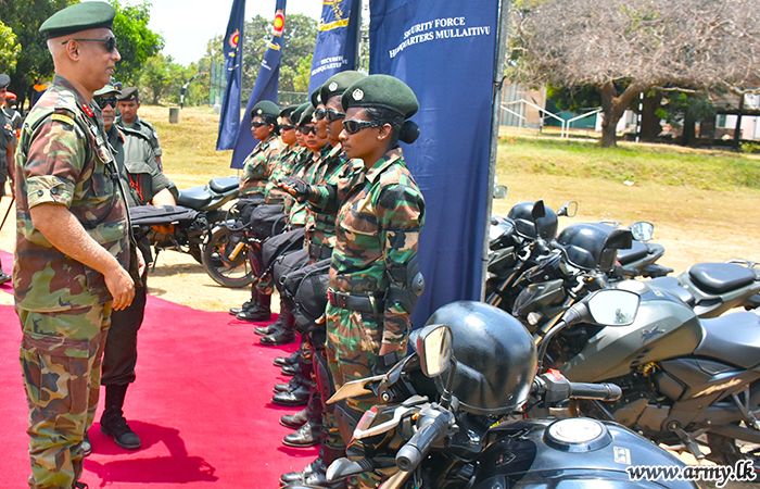 ආරක්ෂක සේනා මූලස්ථානය - මුලතිව් බලප්රදේශයේ මෙහෙයුම් කටයුතු වල පහසුව සඳහා කාන්තා සෙබළියන්ගේ දායකත්වයෙන් ‘ක්ෂණික විහිදුම් කාන්තා යතුරුපැදි කණ්ඩය’ ලෙස කාන්තා යතුරුපැදි කණ්ඩායමක් පසුගියදා ආරම්භ කරනු ලැබීය.