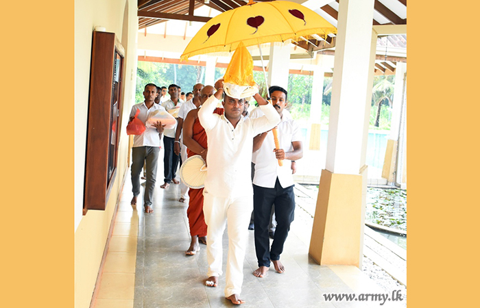 එදිනම සන්ද්යාවේ පිරිත් සජ්ඣායනා වැඩසටහනක් පවත්වමින් එම සුවතා නිකේතනයේ නේවාසික රණවිරුවන්, සිය පවුලේ සාමාජිකයන් සහ යුද්ධ හමුදාවට ආශිර්වාද එක්කළ අතර පසුදින (26) උදෑසන භික්ෂුන් වහන්සේලා වෙත හීල් දානය පූජාකරනු ලැබීය.