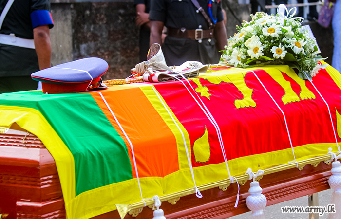 යුද්ධ හමුදාධිපතිතුමන් ලුතිනන් කර්නල් ආර්.පී.කේ.එස්.එස් රණසිංහ ගේ දේහය වෙත අවසන් ගෞරව දක්වයි