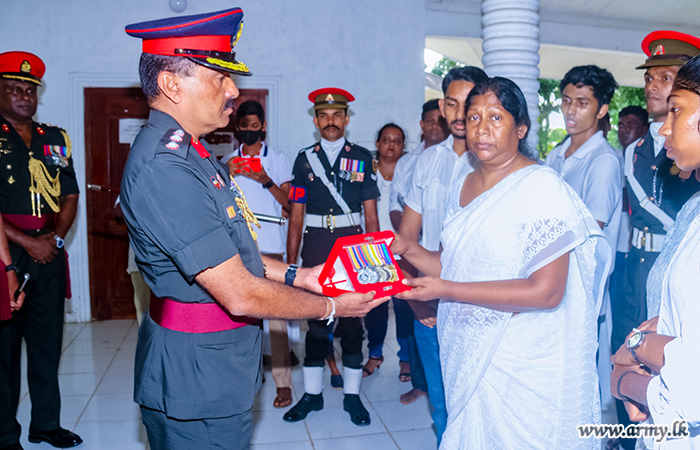 ක්රීඩා අධ්යක්ෂ බ්රිගේඩියර් පී.ඒ.එම් පීරිස් ආර්එස්පී යූඑස්පී පීඑස්සී, ශ්රී ලංකා යුද්ධ හමුදා ස්වේච්ඡා බලසේනාවේ ආධුනිකයින් බදවාගැනීමේ නිලධාරි කර්නල් එන්.එච්.ජේ මංගල සහ ශ්රී ලංකා ජාතික ආරක්ෂක බලමුළුවේ මධ්යස්ථානයේ නියෝජ්ය මධ්යස්ථාන සේනාවිධායක කර්නල් බී.ආර්.ඩබ්ලිව්.එම්.ආර්.ඒ.බී තෝරදෙණිය යන ජ්යෙෂ්ඨ නිලධාරීන් විසින් අභාවප්රාප්ත ලුතිනන් කර්නල් ආර්.පී.කේ.එස්.එස් රණසිංහ සිය කීර්තිමත් යුද්ධ හමුදා දිවිය තුළ හිමිකරගත් පදක්කම් එතුමන්ගේ පවුලේ සාමාජිකයින් වෙත පිළිගන්වන ලදී. දිවංගත ලුතිනන් කර්නල් ආර්.පී.කේ.එස්.එස් රණසිංහ 2009 මැයි මාසයට පෙර මානුෂීය මෙහෙයුම්දී උතුරු නැගෙනහිර කොටි ත්රස්තවාදීන්ගෙන් රට මුදවාගැනීම වෙනුවෙන් ප්රශංසනීය කාර්යභාරයක් ඉටු කළේය. යුද්ධ හමුදාධිපතිතුමන් විසින් නිකුත් කරනු ලැබු විශේෂ නියෝග I (Special Part I Order) පහතින් දැක්වේ: