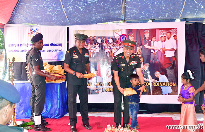 නවතමයෙන් ප්රතිසංස්කරණය කරනු ලැබු පෙරපාසල් ගොඩනැගිල්ල බලධාරීන් වෙත භාරදීමේ උත්සවය අවස්ථාවට ප්රධාන ආරාධිත අමුත්තන් ලෙස 23 පාබල සේනාංකයේ සේනාංකාධිපති සහ 233 පාබල බලසේනාවේ බලසේනාධිපති සහභාගී වූ අතර, එහිදි ඔවුන් විසින් පෙරපාසලේ ළමුන් වෙත ත්යාග පාර්සල්ද බෙදාදෙන ලදී. මෙම උත්සව අවස්ථාව සඳහා යුද්ධ හමුදා ජ්යෙෂ්ඨ නිලධාරීන්, නිලධාරීන්, සෙසු නිලයන්, රාජ්ය නිලධාරීන්, ග්රාම සංවර්ධන සමිති සභාපතිවරුන්, ගුරුවරුන්, දෙමාපියන් සහ දරු දැරියන් ඇතුළු පිරිසක් සහභාගි වූහ.
