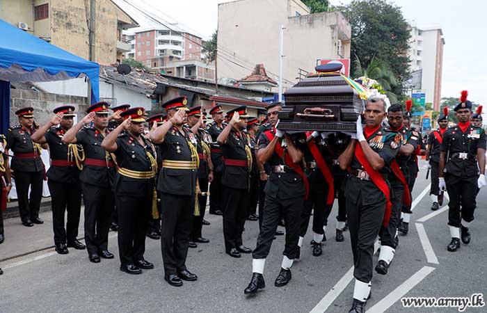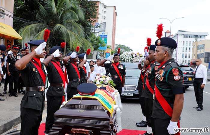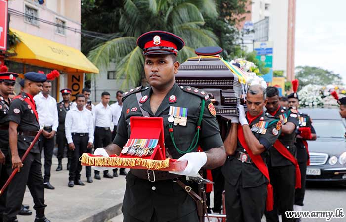 අභාවප්රාප්ත බ්රිගේඩියර් ඒ.ජී.එස්.එම්. පෙරේරා ආර්ඩබ්ලිව්පි ආර්එස්පී යූඑස්පී ගේ දේහය පිළිබඳ අවසන් කටයුතු යුද්ධ හමුදා ගෞරවාචාර මධ්යයේ සිදුකරයි