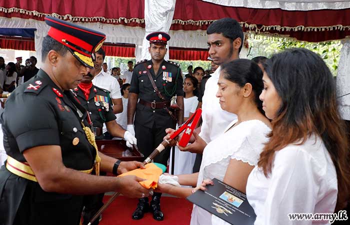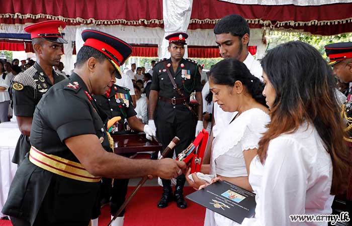මේජර් ජෙනරල් එස්.ඩබ්ලිව්.බී. වෙලගෙදර ආර්එස්පි වීඑස්වී යූඑස්පී එන්ඩීසී විසින් අභාවප්රාප්ත බ්රිගේඩියර් ඒ.ජී.එස්.එම්. පෙරේරා ආර්ඩබ්ලිව්පි ආර්එස්පී යූඑස්පී සිය කීර්තිමත් යුද්ධ හමුදා දිවිය තුළ හිමිකරගත් පදක්කම් එතුමන්ගේ පවුලේ සාමාජිකයින් වෙත පිළිගන්වන ලදී.