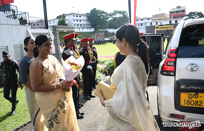 කඳවුරු පරිශ්රය වෙත සපැමිණි ප්රධාන ආරාධිත අමුත්තා වෙත භටපිරිස් විසින් හමුදා සම්ප්රදායානුකූල කඳවුරු මුරයේ ගෞරවාචාරය පිරිනැමූ අතර, අනතුරුව එතුමන් 64 පාබල සේනාංකයේ සේනාංකාධිපති මේජර් ජෙනරල් එම්.එස් දේවප්රිය යූඑස්පී එන්ඩීසී, ශ්රී ලංකා සන්නාහ සන්නද්ධ බලකා රෙජිමේන්තු මධ්යස්ථානයේ මධ්යස්ථාන සේනාවිධායක බ්රිගේඩියර් පී.එන් විජේසිරිවර්ධන ආර්එස්පී යූඑස්පී සහ සන්නද්ධ බලසේනාවේ බලසේනාධිපති බ්රිගේඩියර් එල්.කේ.ටී ප්රනාන්දු ආර්එස්පී යූඑස්පී විසින් උණුසුම් අයුරින් පිළිගන්නා ලදී.