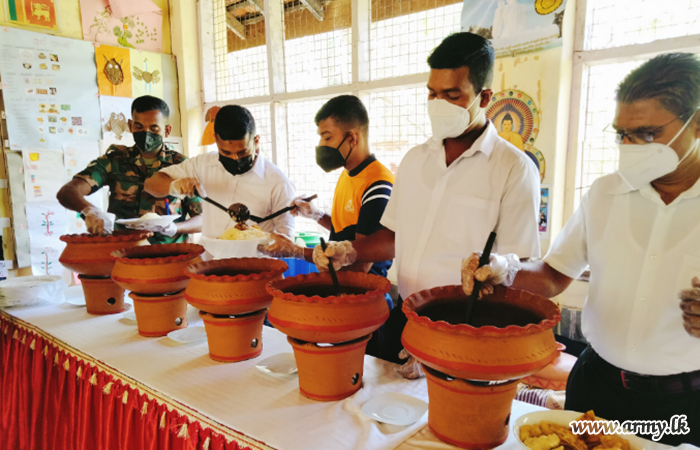 ප්රදේශවාසීන් ලබාදුන් දේශීය ධාන්ය වර්ග සමගින් 1 වන ශ්රී ලංකා ජාතික ආරක්ෂක බලමුළුවේ භටපිරිස් විසින් සියඹලාව ශ්රී සෝභිත ප්රාථමික විද්යාලය, තඹරාව ප්රාථමික විද්යාලය සහ ගාල්ලේගොඩ ප්රාථමික විද්යාලය යන පාසල් තුනෙහි සිසු සිසුවියන් 60 දෙනෙකු වෙනුවෙන් මෙම දිවා භෝජන සංග්රහය පිරිනමනු ලැබීය.