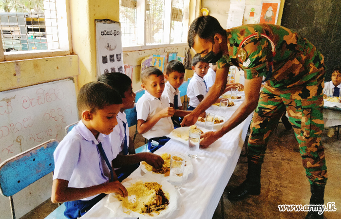 1 වන ශ්රී ලංකා ජාතික ආරක්ෂක බලමුළුවේ භටපිරිස් පාසල් සිසු සිසුවියන්ට ප්රණීත දිවා භෝජන සංග්රහයක් පිරිනමයි